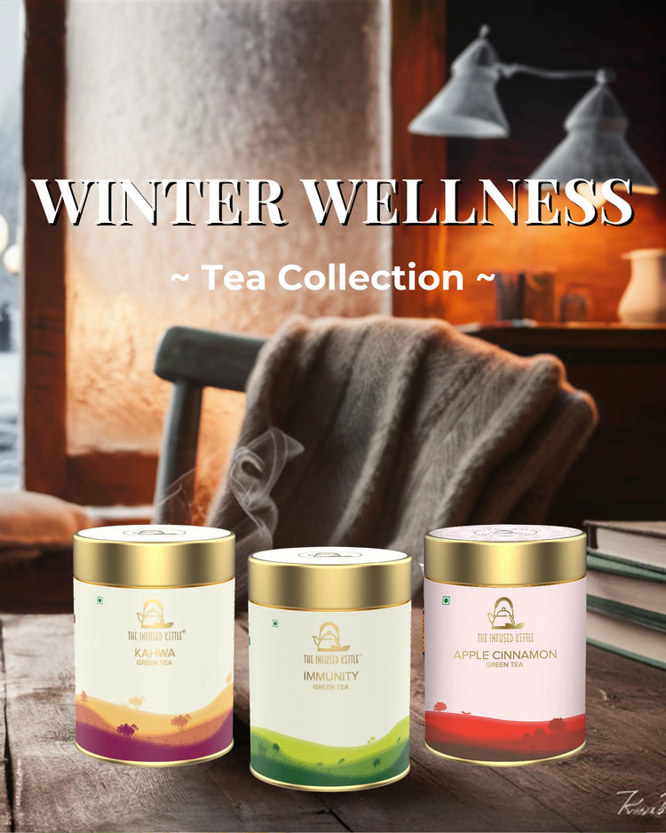 Winter WellnessBeat the winter blues with our comforting tea trio! Start your mornings right with a warm and delicious cup of our Apple Cinnamon tea, bursting with natural apple and cinnamon flavors. Throughout the day, enjoy the Immunity tea, a potent blend of selected herbs...