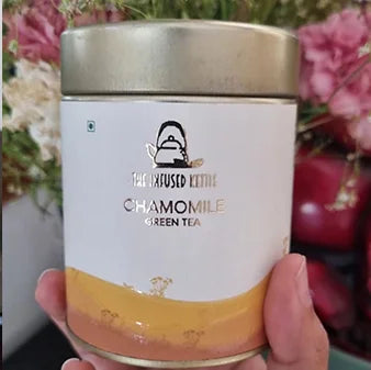 Handcrafted with love, our Chamomile Green Tea combines homegrown chamomile flwowers and green tea from the hills of Darjeeling. Sip serenity and wellness in every cup.