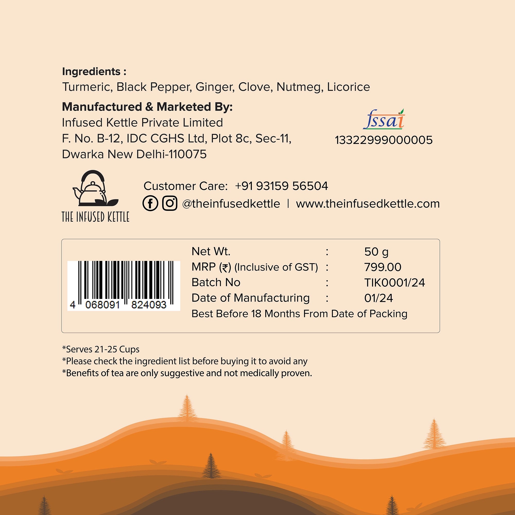 Detox Tea contains Turmeric, Ginger, Nutmeg, Licorice, and Black Pepper for a cleansing blend.