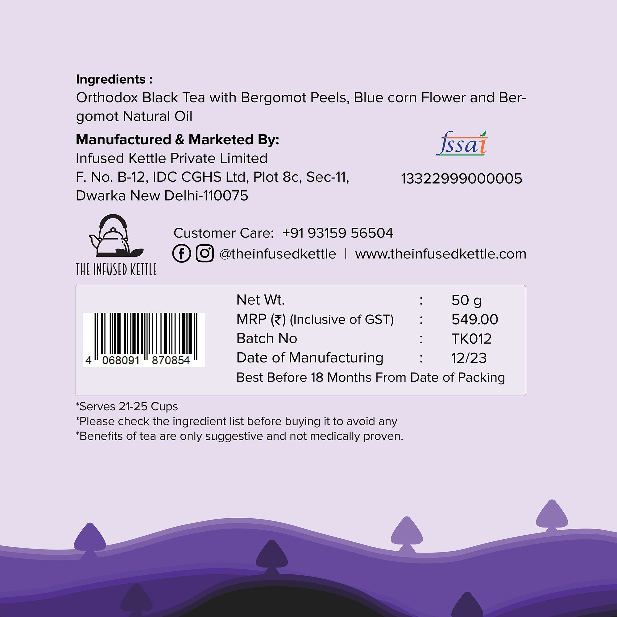 Crafted with care, our Earl Grey tea uses only natural bergamot oil for its citrusy flavor, ensuring a pure and authentic experience. This tea balances boldness and freshness.