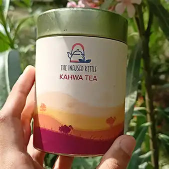 Kahwa Tea is a traditional green tea blended with spices and nuts, originating from the valley of Kashmir.